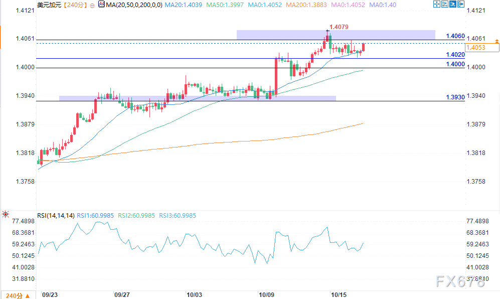 当前美元的回调,被视为自上周1.3930附近低点开启上涨行情后的修正走势。4小时相对强弱指数(RSI)正从超买区间回落,且前述1.4020区域支撑位目前仍能抑制汇率的下行尝试。