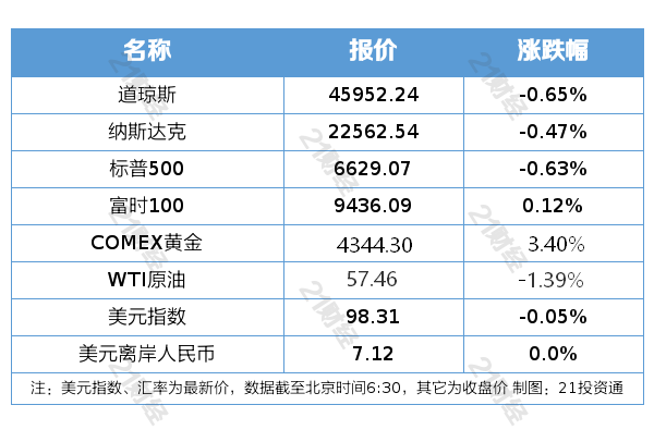 纽约股市三大股指10月16日下跌。截至当天收盘,道琼斯工业平均指数比前一交易日下跌301.07点,收于45952.24点,跌幅为0.65%;标准普尔500种股票指数下跌41.99点,收于6629.07点,跌幅为0.63%;纳斯达克综合指数下跌107.54点,收于22562.54点,跌幅为0.47%。