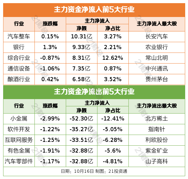 10月16日,市场冲高回落,三大指数盘中一度集体翻绿。截至收盘,沪指涨0.1%,深成指跌0.25%,创业板指涨0.38%。沪深两市成交额1.93万亿,较上一个交易日缩量1417亿,自9月10日以来再度失守2万亿。盘面上,市场热点较为杂乱,全市场近4200只个股下跌。板块方面,煤炭、保险、港口航运等板块涨幅居前,贵金属、半导体、风电等板块跌幅居前。