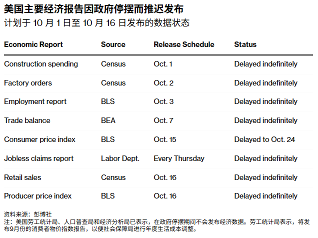美国政府关门事件正将政策制定者置于美国经济关键时刻的“盲目”困境之中。当前,美联储官员正面临10月底利率决策的关键节点——需判断是继续降息还是维持利率不变,但受政府资金短缺影响,包括美国劳工统计局、美国经济分析局在内的多个发布核心经济指标的机构已大幅缩减运营,导致关键数据更新严重滞后。原定于2025年10月15日发布的消费者价格指数被迫推迟至10月24日,而月度就业报告、零售销售数据等反映经济运行的核心指标更是陷入“无限期推迟”状态。