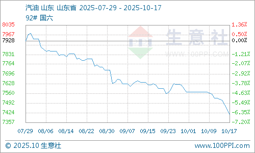 据生意社商品行情分析系统,本周山东地炼汽柴油价格行情走低为主,截止周末国内92#汽油价格为7413.6元/吨,本周价格下滑1.52%;国内0#柴油价格为6384元/吨,本周价格走势下滑1.52%。