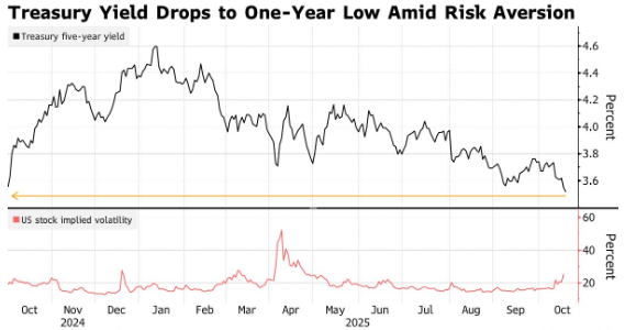 随着对两家美国地区性银行披露的问题贷款可能预示着危机蔓延的担忧加剧,资金纷纷涌向美国国债,这是席卷全球市场的避险热潮的一部分。财政赤字问题与贸易紧张局势等也削弱了风险情绪。除了美债,10年期澳大利亚国债收益率降至4.09%,为4月初以来的最低水平,而同期日本国债收益率也有所下降。