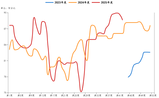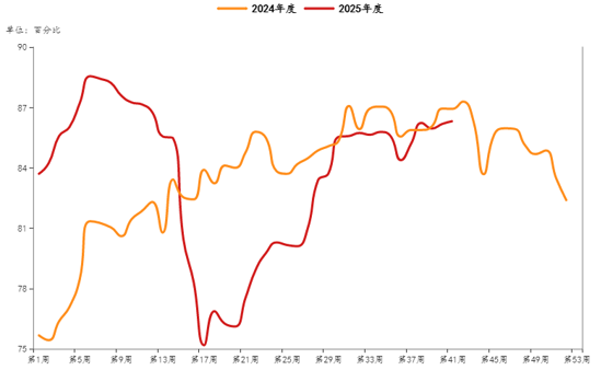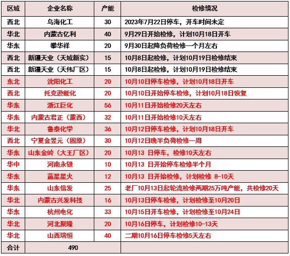 (1)短期检修支撑减弱,下周供应增量预期明确。当前供应端短期检修托底、长期增量可期的格局,使市场提前反应供过于求风险。本周全国样本企业产能利用率81.4%(环比-2.6%),虽受华北、东北企业检修,如山东鲁泰化学、金岭材料10月12日起检修支撑,但多数检修周期短,且烟台万华等前期停产企业已重启。隆众资讯统计,下周产能利用率预计上调至82.4%,检修企业数量减少,供应增量预期强烈,市场提前抛售规避风险。