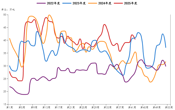 (3)库存结构矛盾凸显,去库持续性存疑,全国库存虽环比下降,但区域及品类分化明显,市场对库存回升担忧加剧。最新上样本企业库存40.33万吨,环比-4.25%,但华东因检修未改善出口、华中因河南氧化铝采购疲软,区域库存上行;山东高度碱受仓单及出口问题,库存去化受阻,且下周供应增加后,市场预计库存将止跌回升。
