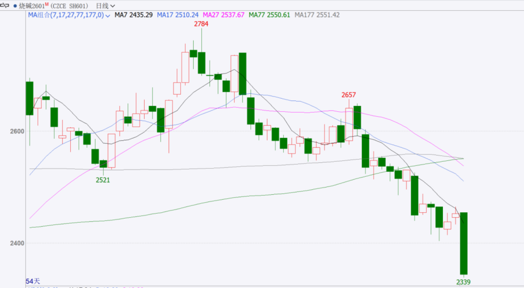 供应压力长期存在,且主力下游或有减产动作,烧碱2601主力合约收盘报234元/吨,大幅跌幅4.37%。