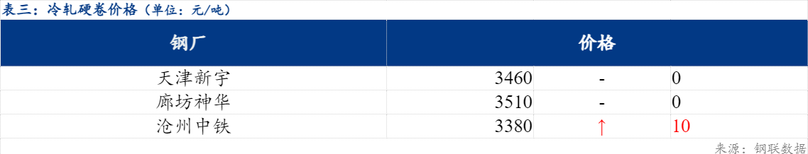 3、以上冷轧硬卷廊坊神华规格为0.27mm,其余为0.35mm;
