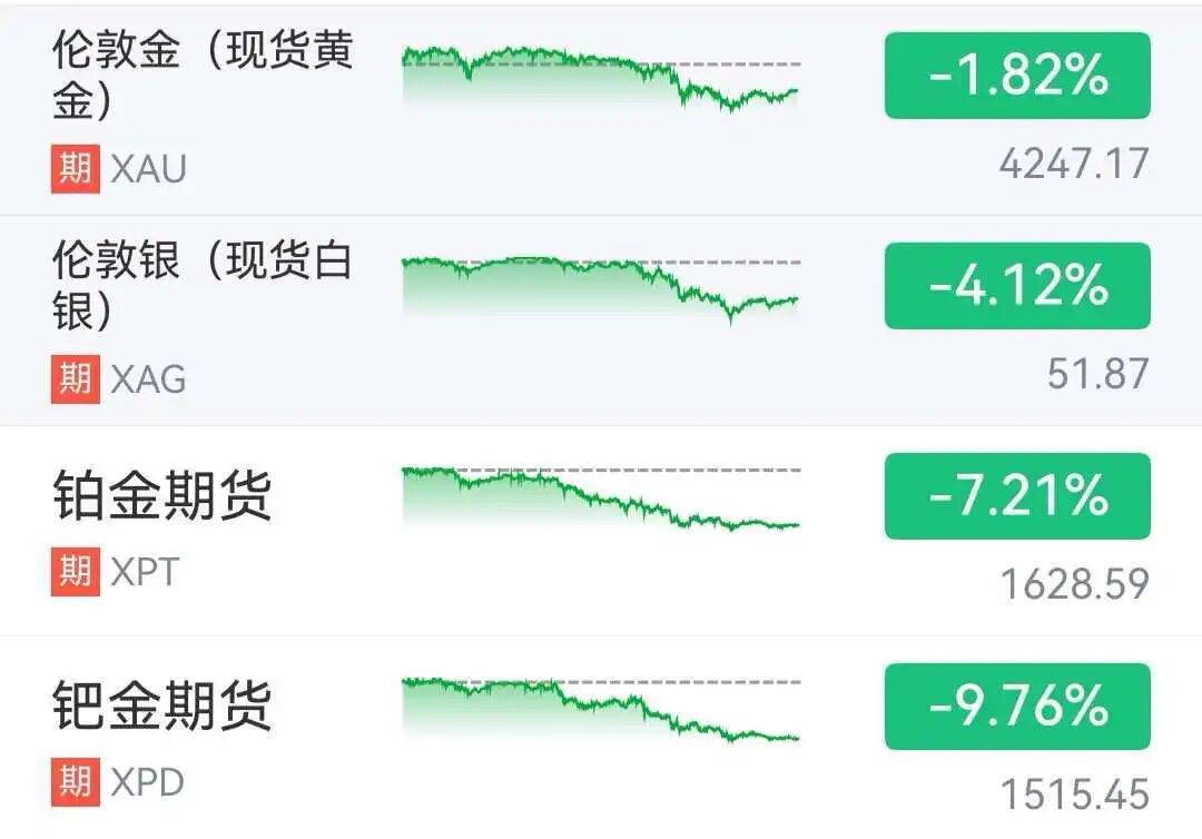深夜,贵金属集体下跌,此前黄金、白银价格纷纷创出历史新高。