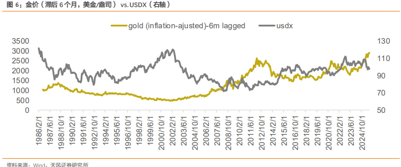 金价与美元指数长期负相关,按照1986-2000,2000-2020,2021-2025分段回归,都显示负相关。油价和美元指数关系2020之后出现变化:回归显示,1988-2000年油价和美元指数正相关;2000-2020年,变成负相关;2021年及之后,再度变成正相关。