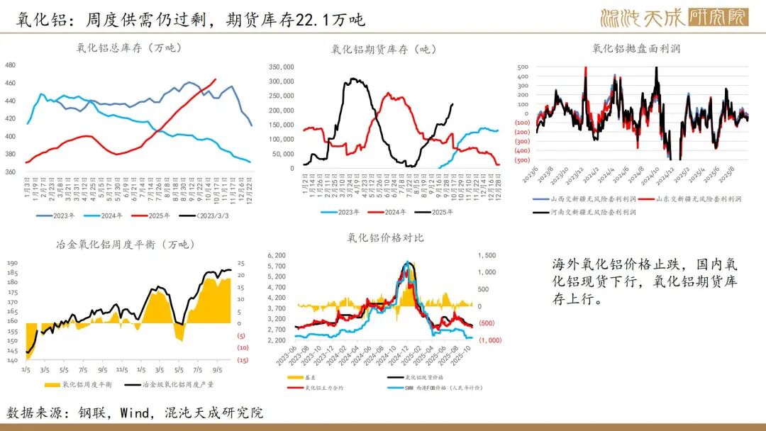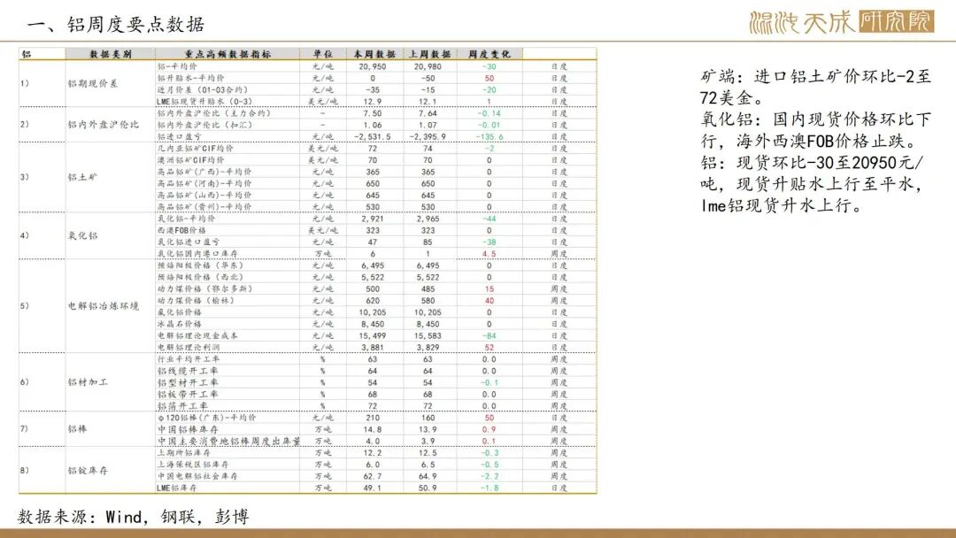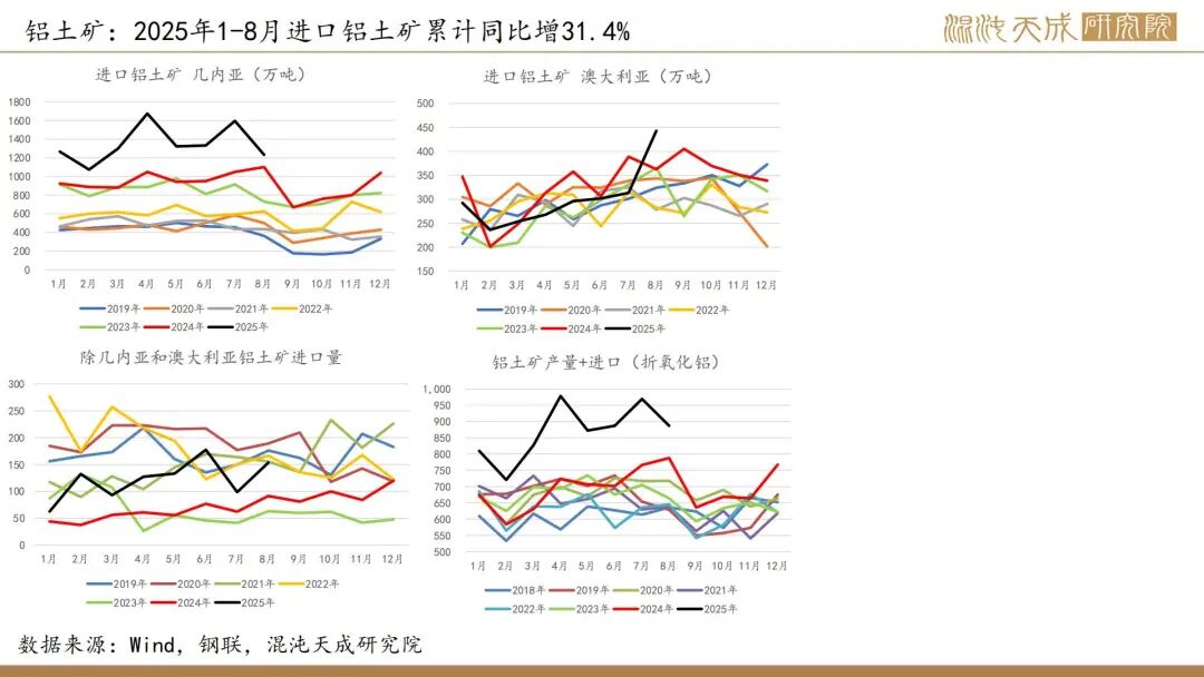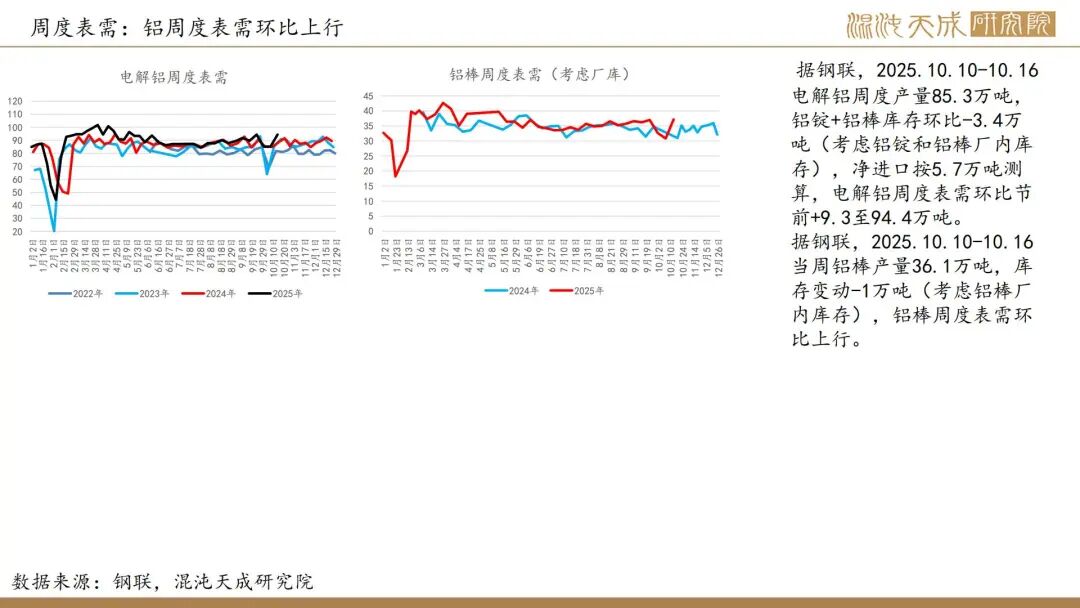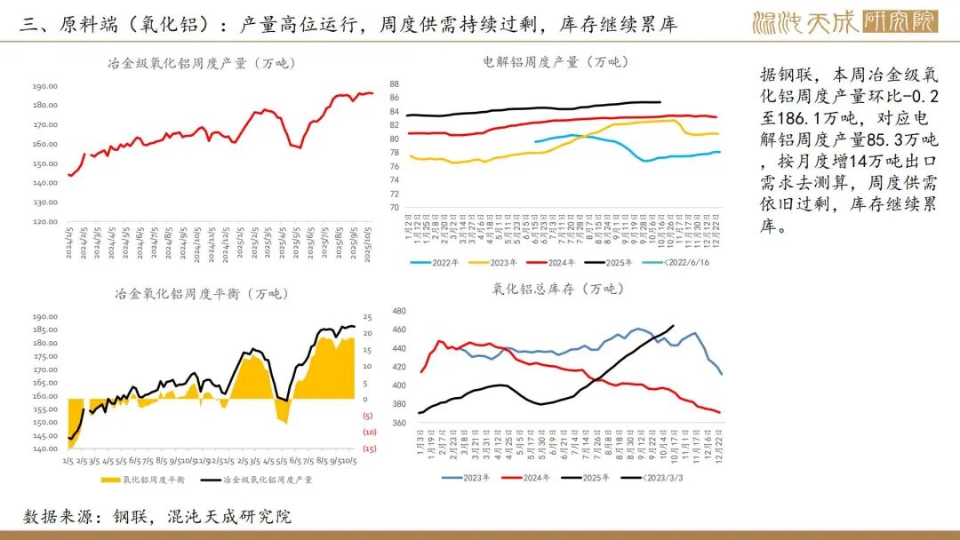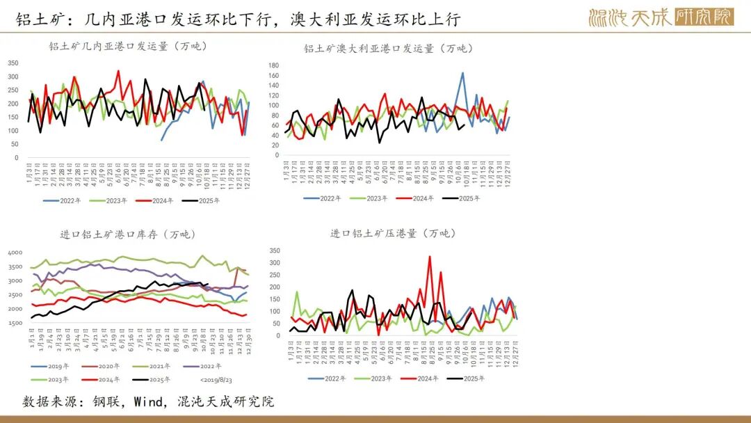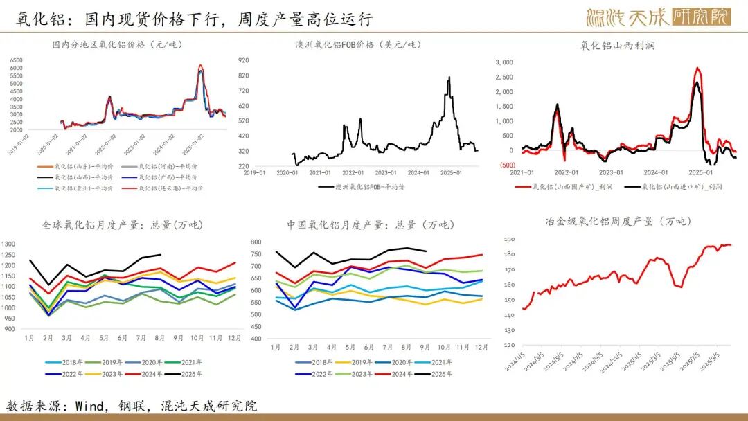 6.【力拓三季度铝产量增加,铝土矿2025年产量指导目标上调】力拓发布的2025年第三季度报告显示,该季度铝土矿产量同比增长9%至1640万吨;氧化铝产量达190万吨,同比增长7%;原铝产量86万吨,同比增长6%。公司将铝土矿的产量指导目标从5700-5900万吨(较高水平)上调至5900-6100万吨,这体现了不断提升的产能利用率,尤其是在韦帕矿区,安朗铝土矿持续超名义产能运行。(力拓)