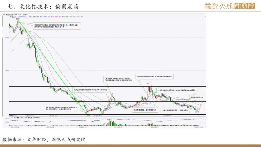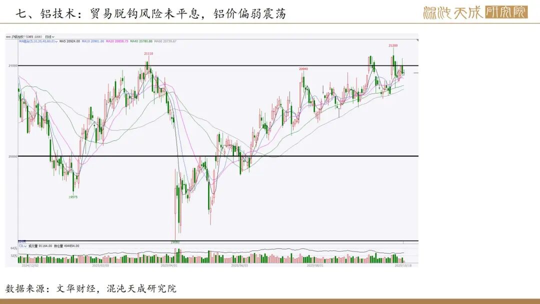 中美贸易脱钩风险并未消除,从前期美联储降息验证全球需求复苏的交易逻辑,向贸易脱钩需求下行的逻辑摇摆,考虑到周五夜盘时间中美会谈预期在增强,恐慌情绪有所修复。中美贸易脱钩概率偏低但无法排除,铝价上行承压表现为偏弱震荡。本周河南某氧化铝厂降产引发规模减产预期,氧化铝期价止跌回升,考虑到本次过剩已经累计到一定程度,不再像5月那次只要短停就可扭转过剩,同时氧化铝厂面临谈长单,长单执行和保市占率等问题,所以供应的灵活性会被软性约束,再加上进口矿价下行,成本支撑在走弱,做空确定性较高,考虑到下方空间,可选择2605合约作为逢高空配标的。