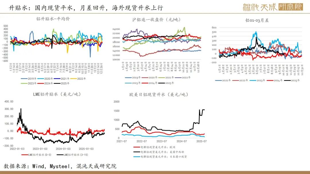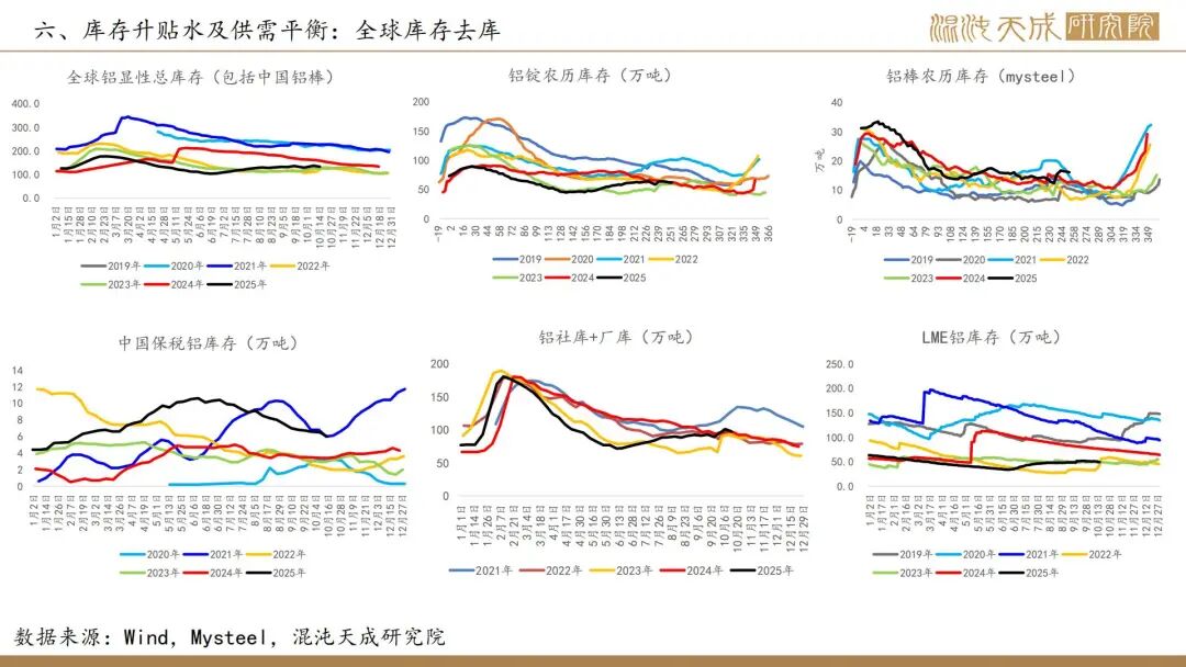 本周铝锭+铝棒库存环比下行,现货贴水上行至平水。LME库存-1.8至49.1万吨,现货升水上行,全球库存去库。