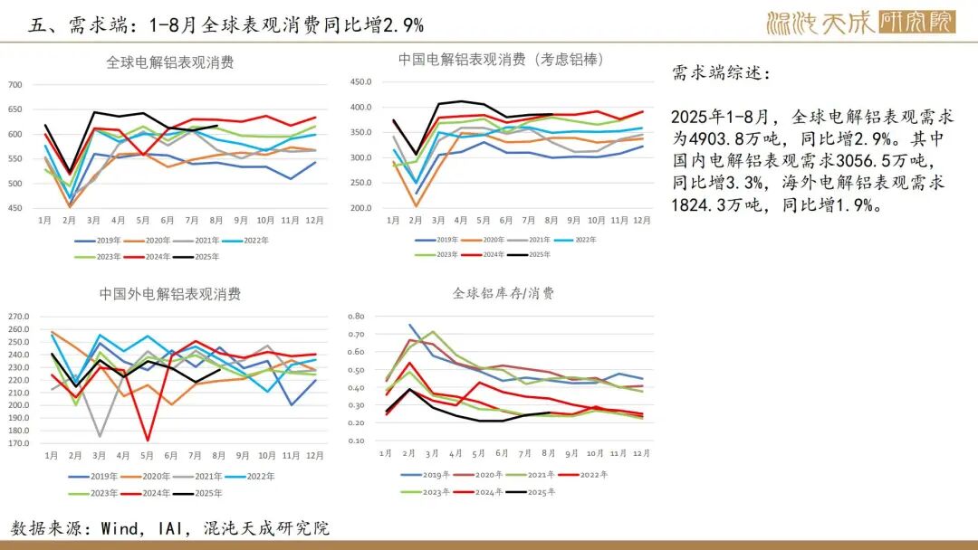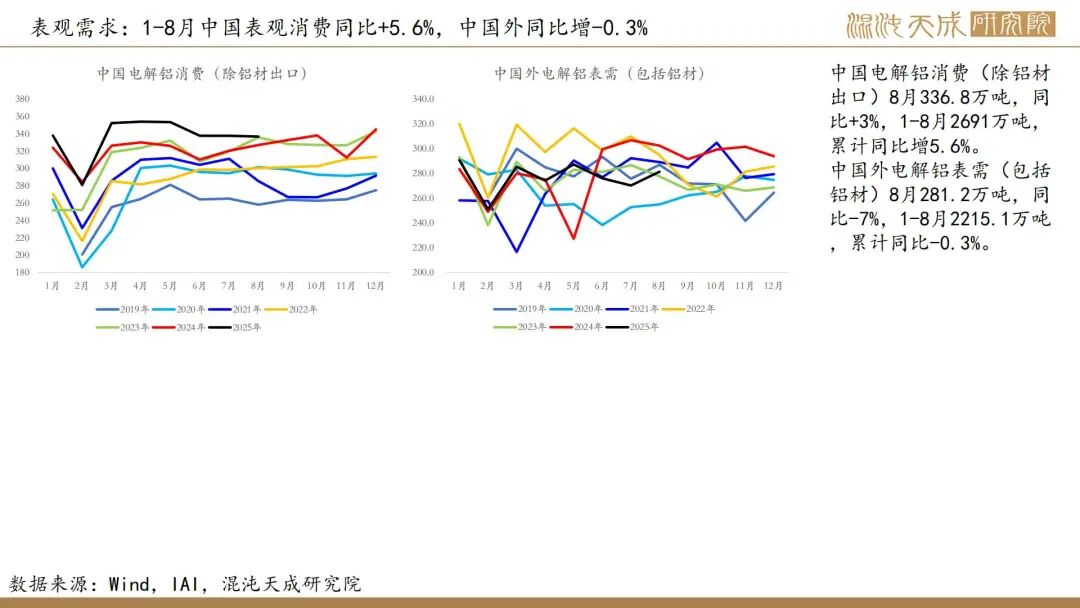 1.【WBMS:8月全球原铝供应短缺10.54万吨】世界金属统计局(WBMS)公布的最新报告显示,2025年8月,全球原铝产量为613.45万吨,消费量为623.99万吨,供应短缺10.54万吨。2025年1-8月,全球原铝产量为4850.26万吨,消费量为4966.13万吨,供应短缺115.87万吨。2025年8月,全球氧化铝产量为1289.06万吨;2025年1-8月,全球氧化铝产量为9946.5万吨。(金十数据)