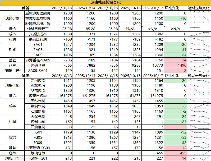 基本面:玻璃的阶段性压力明显,一方面地产金九银十近尾声,下游订单天数环比小幅下滑,前期储备原片企业目前也已以消化前期库存为主,另外近期玻璃关于反内卷的减产政策相关措施没有进一步落实,盘面承压下行后玻璃也处于期现商出货的负反馈阶段,中游库存高位,盘面持续走低后仍有大量可抛向市场的货源,进一步加剧了现货的需求压力,近端需求有压力,远端供应收缩也还没有下文,玻璃近期供应又在复产点火,也就使得玻璃持续走弱。