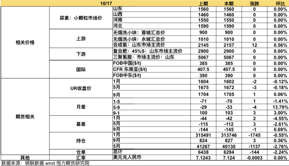 基本面:前期下游农业秋季玉米收割以及小麦种植进度受阻,工业尿素采购受到影响,整体氮储也仍待指示。本周短停装置较多,日均供应有所下滑,而北方天气放晴后农需略有好转,情绪边际改善,昨日尿素现货市场继续僵持,厂家存挺价意愿,整体成交一般。近期印标数量和价格低于上一次,且国内未放新的出口配额,提振有限,市场价格仍有松动可能。尿素盘面受现实弱供需拖累,低位盘整,警惕宏观和出口相关政策调整带来的支撑,操作上短期不建议过度追空,重点关注出口法检政策动向和淡储节奏