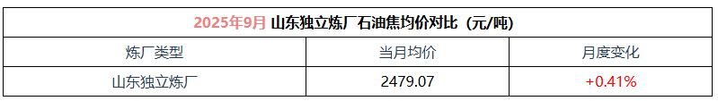 9月份,山东独立炼厂石油焦均价2479.07元/吨,较上月涨10.07元/吨,涨幅0.41%。据卓创资讯测算,9月30日山东独立炼厂均价为2460元/吨,较8月31日当日涨20元/吨,涨幅0.82%。