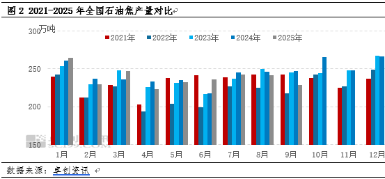 2025年9月石油焦产量228.48万吨,环比8月下降0.11%,同比去年同期下降5.57%,产量环比下降的主要原因是部分炼厂检修所致。
