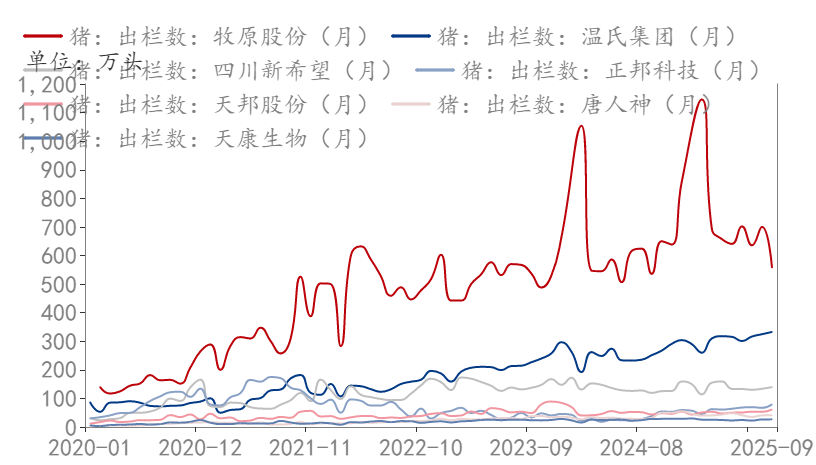 (3)钢联数据显示,牧原股份9月生猪出栏量557万头,较上月700万头下滑143万头,环比降幅20.43%;同比增4.1%。