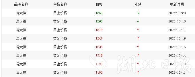 截至10月20日,周大福足金饰品价格为1262元/克,较今年年初每克上涨超450元。