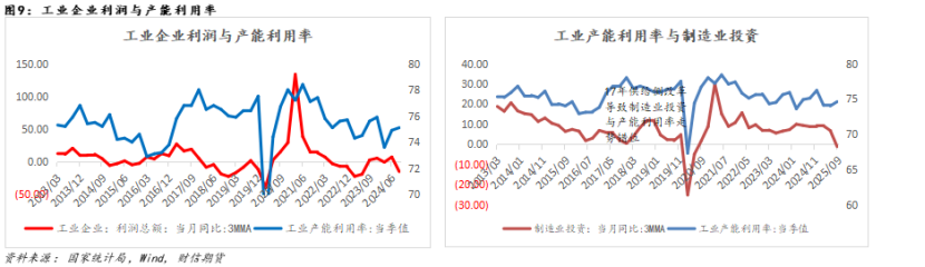 从钢材需求驱动来看,钢材需求驱动偏弱态势未改。地产销售对房地产新开工指引仍较弱,短期地产新开工面积或维持低位运行;受化债及专项债投向影响,基建投资回落态势未改(广义基建投资单月同比连续三个月下降,且下降幅度呈现扩大态势);制造业方面,利润驱动不足,工业企业产能利用率整体处于偏低水平(三季度环比二季度略有回升),制造业固定资产投资整体仍处于收缩状态(单月同比亦连续三月下滑)。