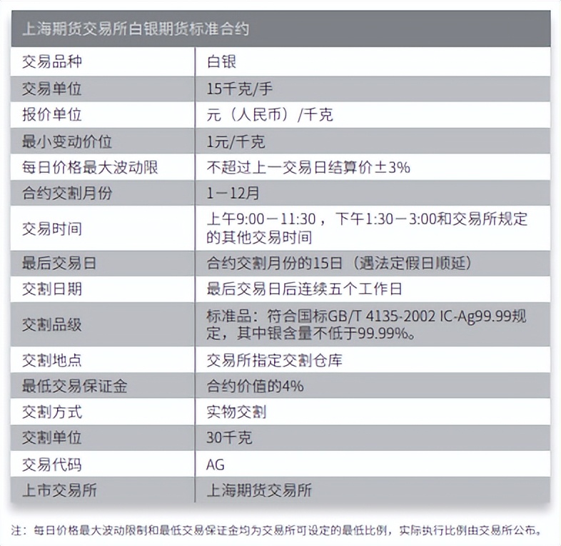 白银期货标准合约的交易单位为每手15千克,交割单位为每一仓单30千克, 交割应当以每一仓单的整数倍进行。