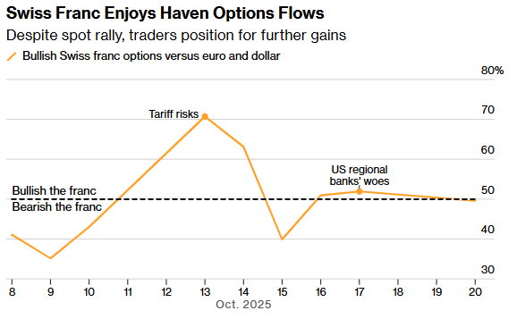 套期保值成本已升至自8月中旬以来的最高水平,通过期权购买瑞士法郎的溢价已回升至6月份时的水平,此时交易员们正寻求保护以及明确的交易方向。