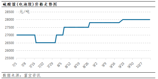 在三元材料领域,10月订单预计延续9月增势,中高镍三元材料需求继续受益于国内新能源汽车市场增长。硫酸钴价格持续上涨推动三元材料成本上升,但电芯企业对高价接受度有限,市场观望情绪浓厚,成交趋于谨慎。