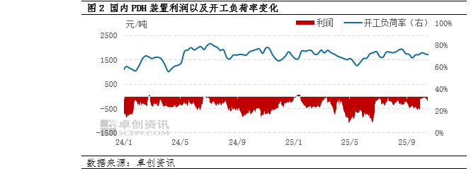 中国PDH装置开工率以及利润情况尚可也是支撑贴水上涨的一大因素。国内PDH装置开工负荷率8月份以来多维持70%上方运行,且近期装置利润一定程度改善,但聚丙烯连续下跌,也制约了贴水的继续上涨。