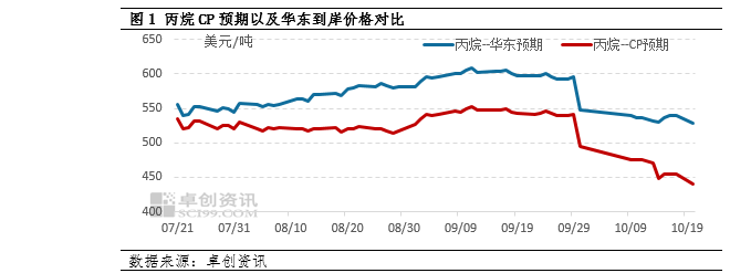 10月份国际LPG市场宽幅下跌,中国到岸价格虽也有下跌,但跌幅明显小于CP预期,中国化工需求以及中美贸易局势对到岸有一定程度支撑。