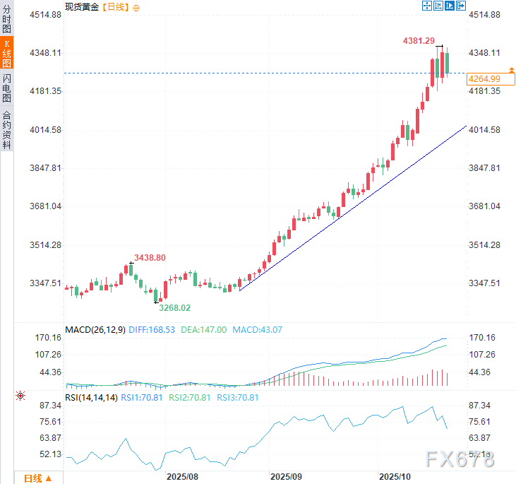 北京时间16:22,现货黄金现报4264.22美元/盎司。
