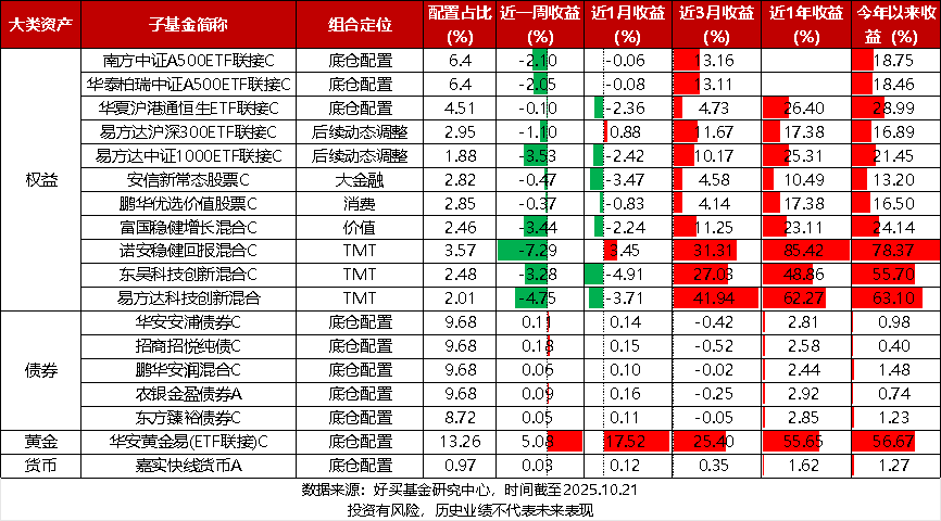 黄金继续上涨,不断创出新高,近一周,爱养基中的黄金ETF联接基金大涨5个点,为组合做出了贡献。