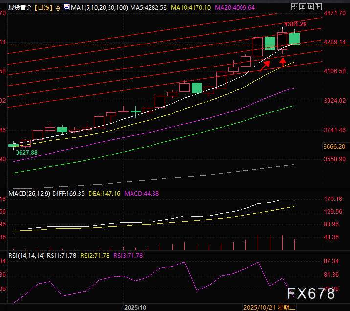 同时叠加日线图上黄金仍处于超买区间,成为触发部分获利了结的核心驱动力。