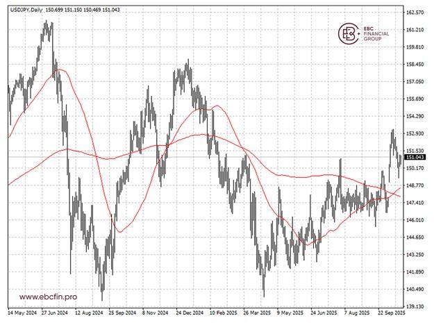 日元已形成死亡交叉,进一步强化看跌趋势。我们认为短期内极可能重新测试1美元兑153日元的低点。