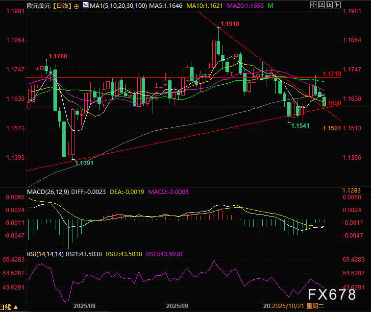 欧元近期下跌与“通胀信号走弱”及“欧洲央行谨慎言论”密切相关。德国PPI已连续六个月下降,9月降幅0.1%,这一数据反映出制造业成本压力缓解。尽管投入成本下降可能利好行业利润率,但也进一步强化了“欧元区整体消费者价格涨幅低迷”的市场认知。