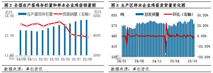 原料一降一稳,养殖成本或微降。近期新粮上市,短期玉米价格或延续偏弱走势。受国内油厂库存均处于年内高位影响,市场心态普遍观望,卓创资讯预计短期豆粕价格低位趋稳运行。饲料原料价格或一降一稳,因此11月预计鸡蛋饲料成本或走低,但降幅或不大,对盈利改善作用有限。