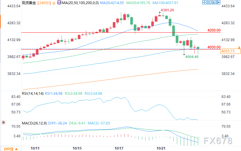 汇通财经APP讯——周三(10月22日),金价持续承压,曾一度接近4000美元关口,随后获得反弹空间,盘中回升至4050美元附近。美元在周三上半段保持温和但积极的涨势,不过在华尔街股市开盘后逐渐失去动能。