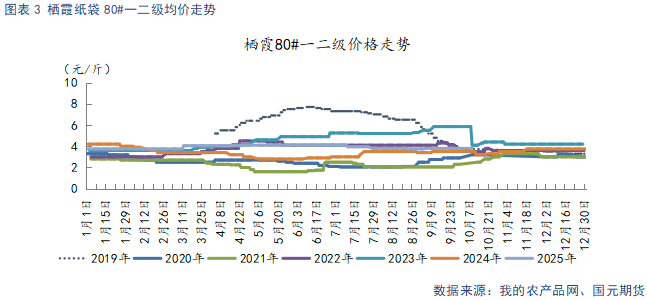 新季晚熟生长期,先后遭遇大风沙尘、高温干旱天气,9月底开始的持续降雨又进一步延缓上色进度,双重不利条件导致新季果商品率偏低,好货供应尤为紧张,直接推动好货价格高企,同时与中等及偏差货源形成明显价格分化,市场 “以质论价”的情况愈发突出。与此同时,降雨不但阻碍了入库工作,还进一步引发市场对苹果后续储存质量的担忧情绪,大幅推升了远月05合约的估值。消费端则对市场形成制约,随着梨、柑橘类水果逐步供应市场,终端消费者对高价苹果的接受度相对有限,市场需求端支撑力度不足。当前好货难寻的供应现状与终端掣肘之间博弈,盘面暂以高位震荡看待。近几日北方降雨暂歇,收购入库开始加速推进,关注逐步上量后的价格变动以及入库情况。苹果2601合约参考区间8400-9000元/吨。