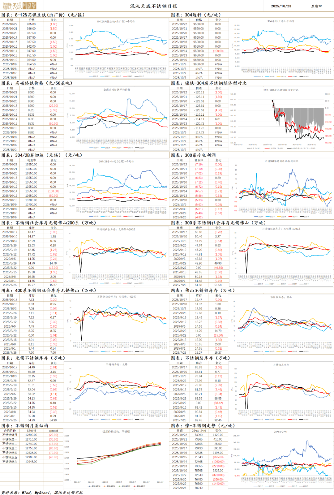 需求端,传统旺季逐渐走向尾声,整个旺季期间市场氛围并不活跃,下游仍以刚需采购为主。不锈钢需求相对稳定,新能源需求增长近期相对缓慢。