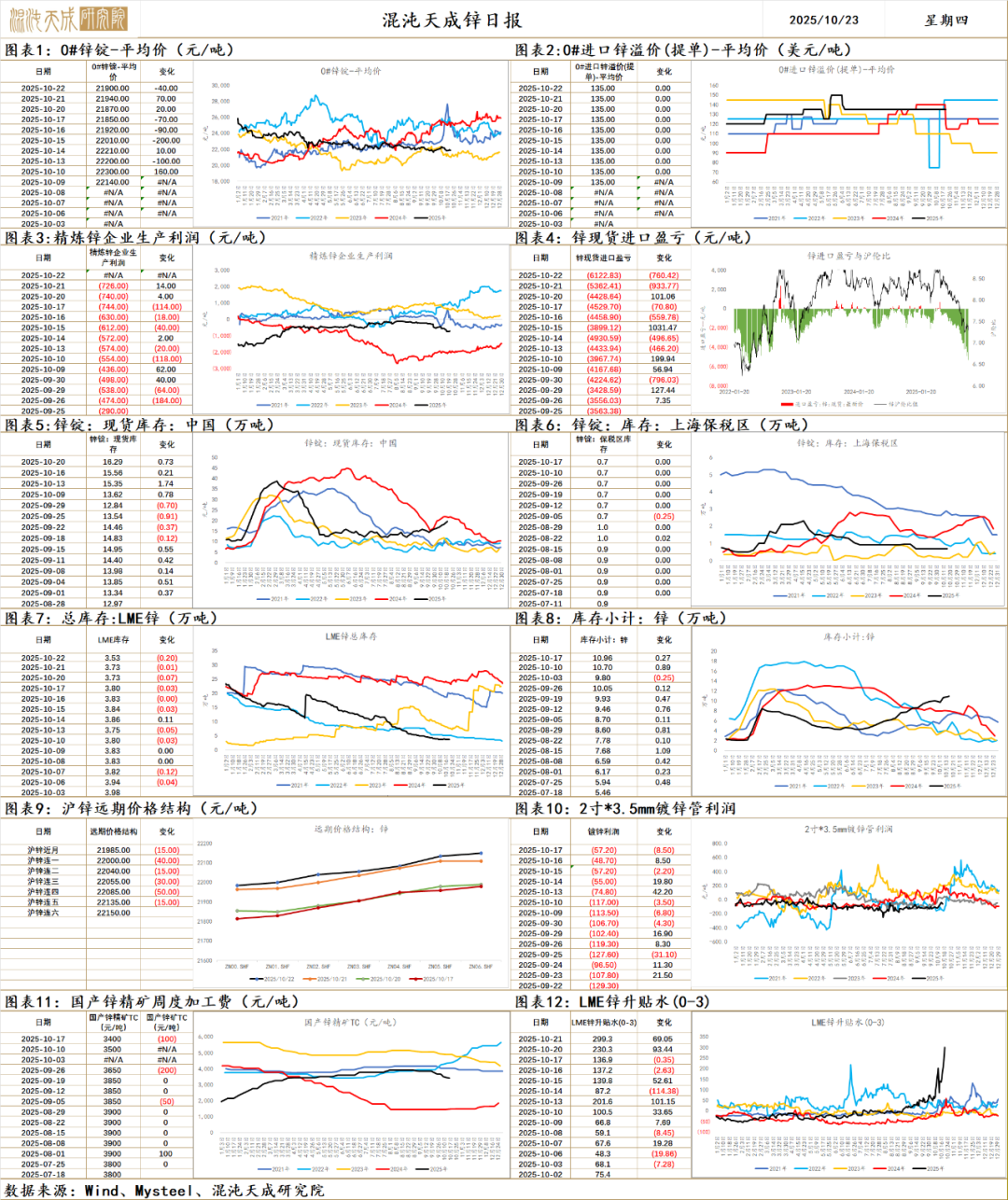 3.【伦锌又现“逼仓”行情:现货溢价飙升至1997年以来最高水平】SHMET10月22日讯,伦锌市场正面临数十年来最严重的一场挤压,交易员们争相抢夺支撑交易所合约的、日益枯竭的库存,将现货锌价推升至了二十多年来的最高溢价水平。目前现货锌价相较三个月期合约的溢价已飙升至每吨323美元,创下至少自1997年以来的最高纪录。当前逼仓行情的根源在于LME库存的持续消耗。由于西方多家冶炼厂在加工利润崩溃后削减产量,LME仓库网络中的锌库存已暴跌至接近2023年创下的历史低点。数据显示,目前LME仓库中仅有24425吨锌可供买家提取。对于一个年消费量达1400万吨的全球市场而言,可用量不足一日。(华尔街见闻)