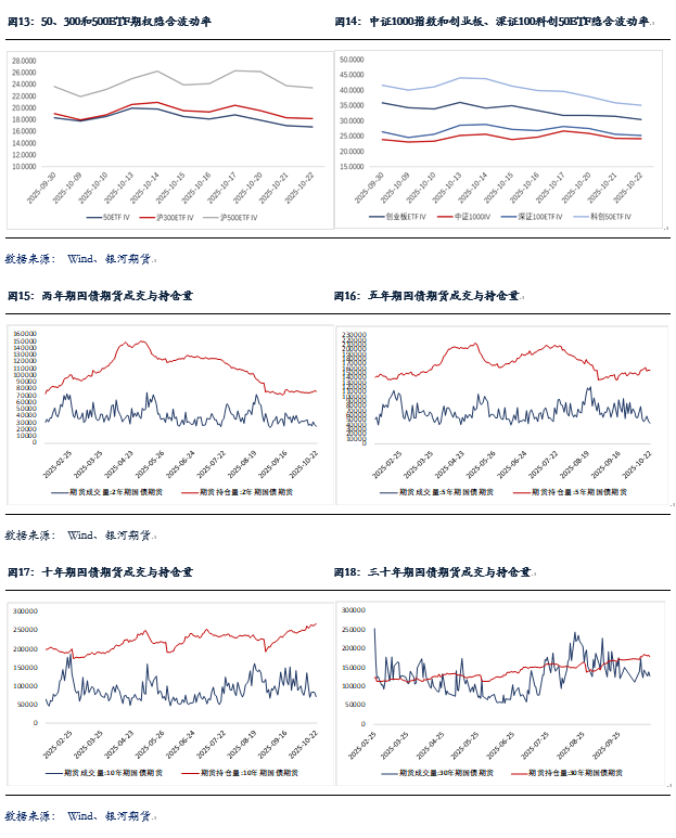 期权方面,ETF期权10月合约今天到期,但多数期权品种成交量小幅回落,显示市场观望情绪较高。品种上看,创业板ETF和科创50ETF期权成交量相对活跃。波动率方面,多数期权品种隐波震荡回落。
