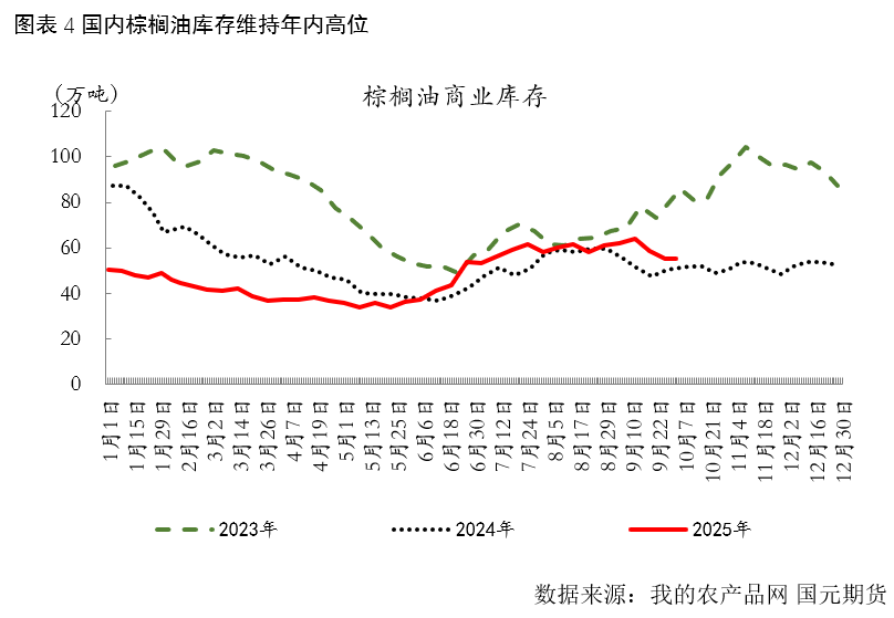 8月份棕榈油进口量大幅增长,创下一年新高,主要是因为精炼商为保障节庆期间的供应而提前备货。进入9月,这部分集中备货需求减弱。油脂需求替代方面,8月份,棕榈油凭借其相对于豆油的价格优势,成为节前备货的主要选择。9月下旬市场格局突变。由于阿根廷政府临时取消了豆油出口税,导致豆油国际价格大幅下调,较棕榈油的价格竞争力显著提升。这促使印度买家在9月底转向大规模采购阿根廷豆油,仅在两天内就采购了30万吨,直接导致9月豆油进口激增,并部分替代了棕榈油的需求。