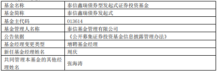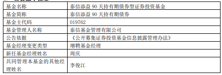泰信添益90天持有期债券泰信鑫瑞债券增聘周庆