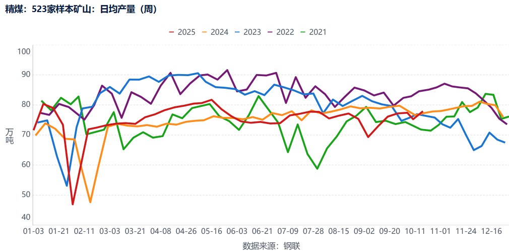 (1)供应端,乌海地区环保及安监政策再度加严,乌达地区3个采空区治理项目及部分露天煤矿停产,涉及产能占当地原煤供应的30%;目前采空区治理项目虽恢复销售,但生产尚未重启且恢复时间待定,进一步制约区域供应。同时,近期煤矿零星事故仍有发生,叠加区域性安全管控强化,焦煤供应呈现局部缩减态势。