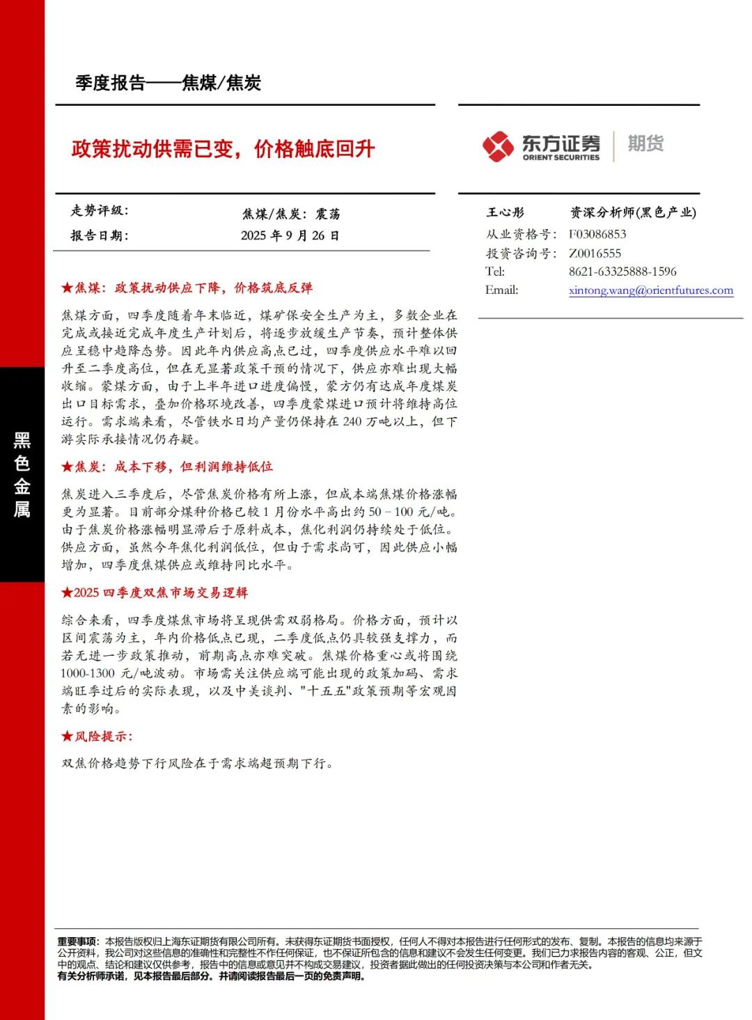焦煤/焦炭:政策扰动供需已变,价格触底回升