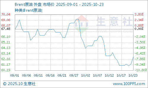 美国商业原油库存下降,叠加市场对贸易争端的忧虑缓和,国际油价上涨。10月22日,美国WTI原油期货12月合约结算价报58.50美元/桶,布伦特原油期货12月合约结算价报62.59美元/桶。