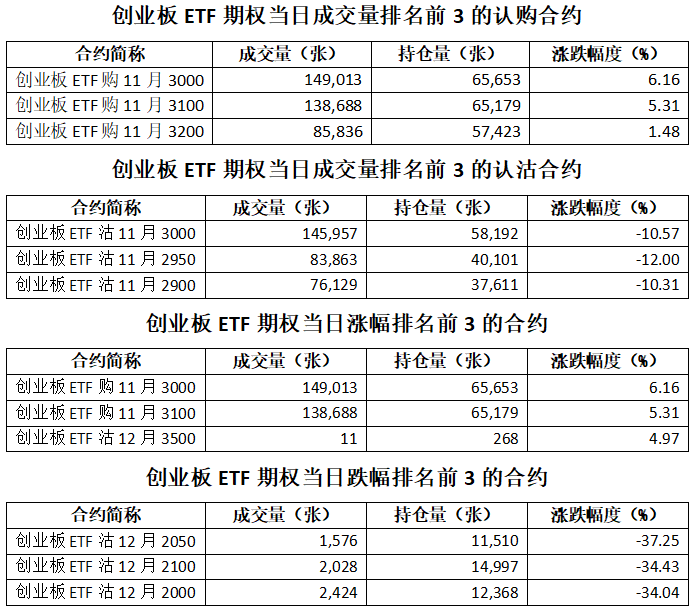 创业板ETF期权总成交面额408.87亿元,减少26.56%,期现成交比为0.27,权利金成交额11.53亿元;期权总成交量1,366,966张,减少26.80%,其中认购期权成交量687,567张,认沽期权成交量679,399张,认沽认购成交比率为0.99(上一交易日认沽认购成交比率为1.06)。