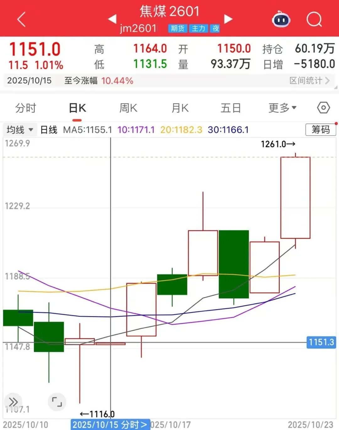 近期,焦煤期货开启一波上涨行情。期货日报记者注意到,焦煤期货主力2601合约自10月15日以来上涨超10%。