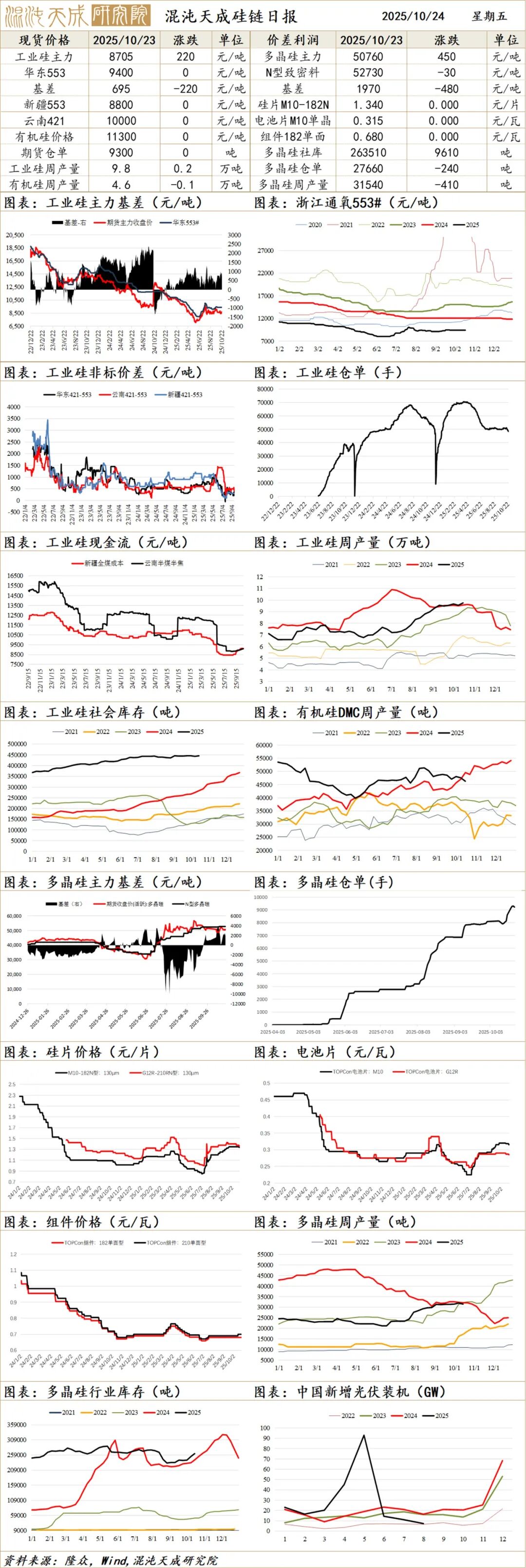 1、反内卷实际影响不大,核心驱动看供需;10月供增需稳,11月供需双弱。目前看因西南产量见顶,但合盛仍有复产预期,产量正在稳步上升;若合盛继续复产基本抵消西南减产,枯水期需求转后后,累库压力上升。