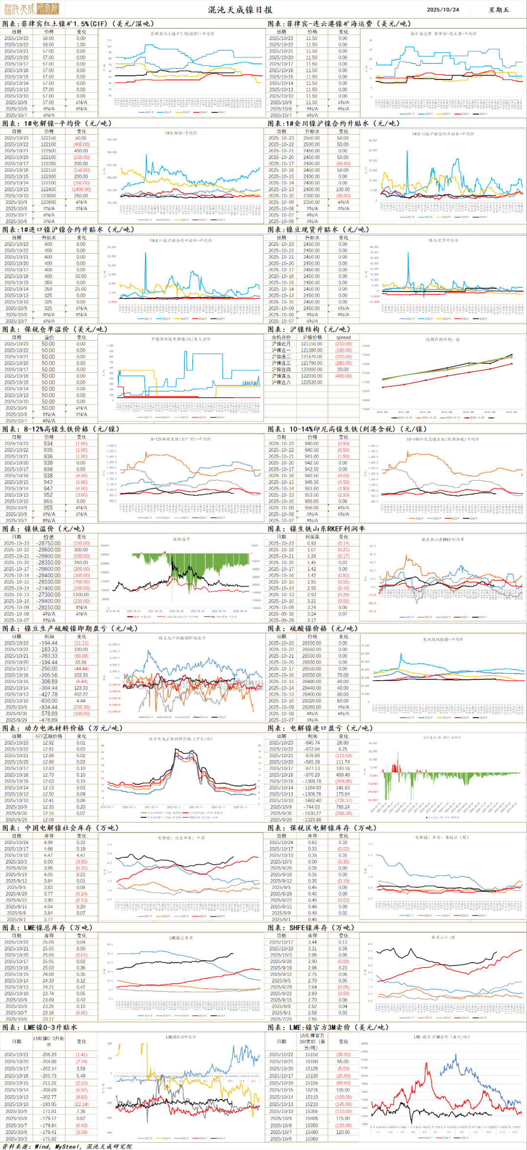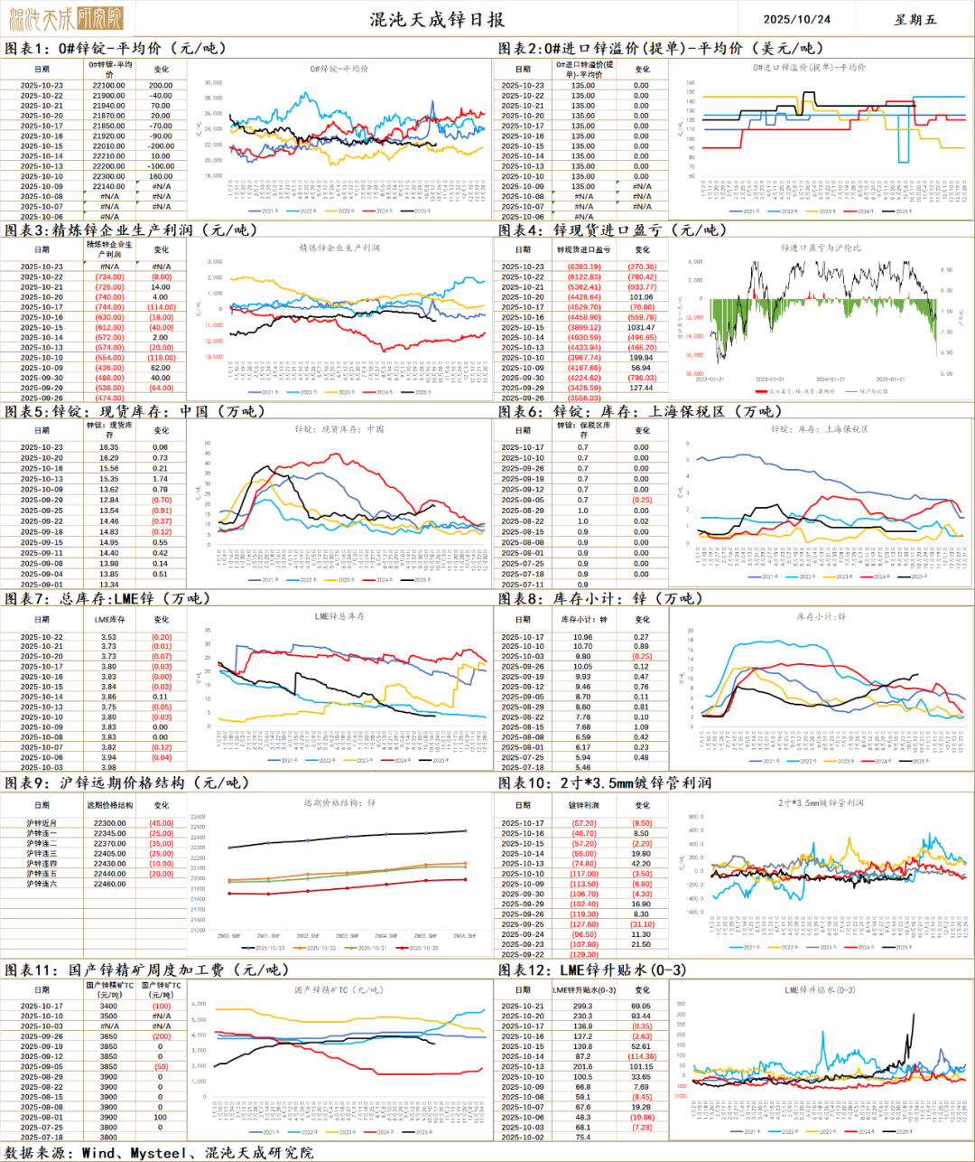 1.【中国9月锌产量同比增加22.8%至65.1万吨】SHMET10月23日讯,国家统计局发布的数据显示,中国2025年9月锌产量为62.5万吨,8月份为65.1万吨,同比增加16.2%;1-9月累计产量为545.9万吨,同比增加6.5%。(国家统计局)