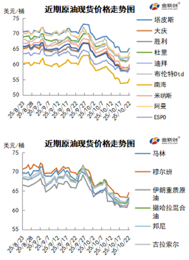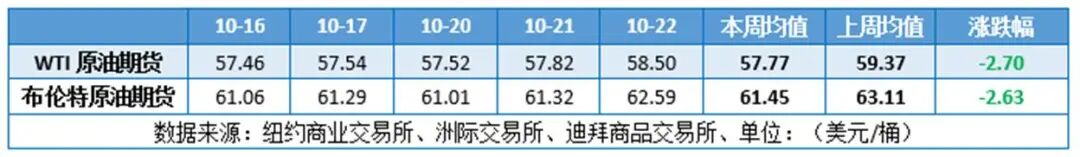 本周(10.16-10.22),原油整体呈现低位反弹的走势,但周均价环比下跌。