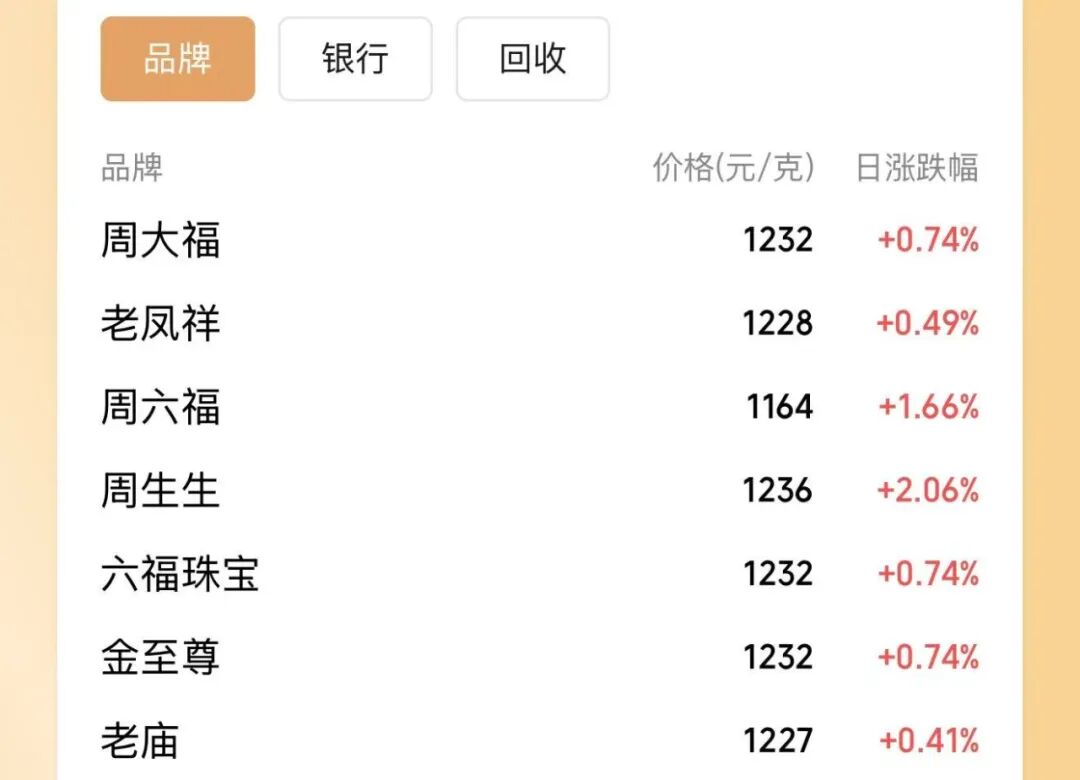 △10月24日,部分国内品牌首饰金价格上涨。(图片源自腾讯理财通)